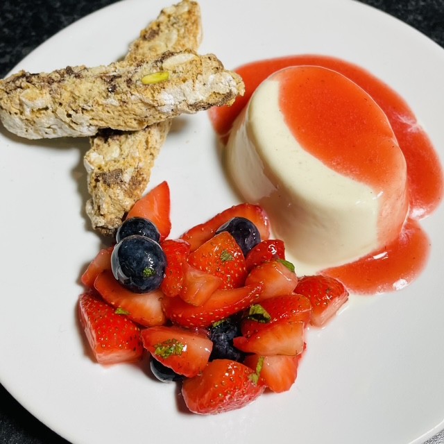Rhubarb & Ginger ‘Mess’ Possets, Cantucci biscuits